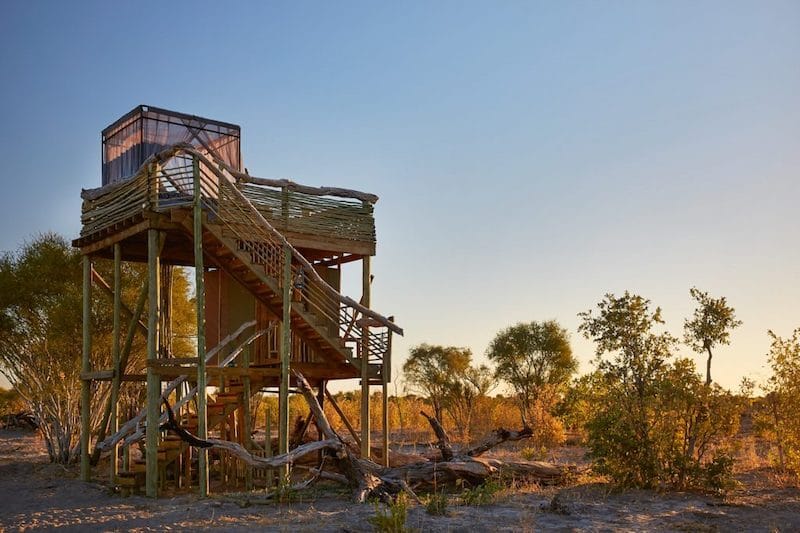 I’ll never forget the night I spent on the Elephant Pan Skybeds in Botswana. Imagine lying in a proper bed with soft linens, a mosquito net gently draped around you but instead of a room, you’re on a raised wooden platform out in the middle of the bush.